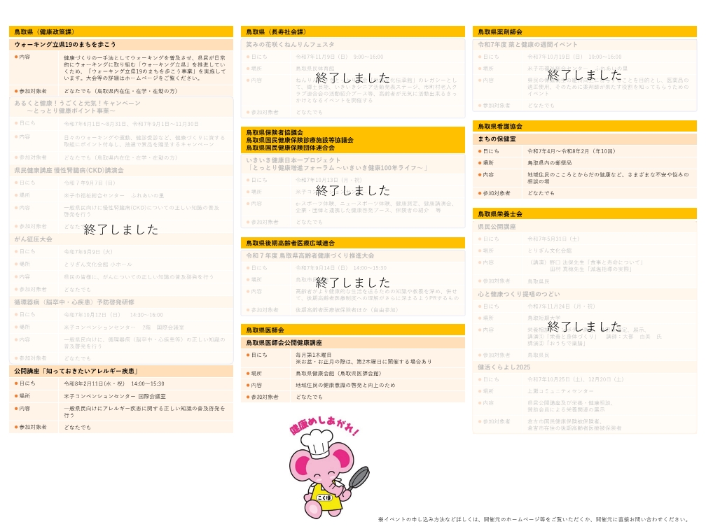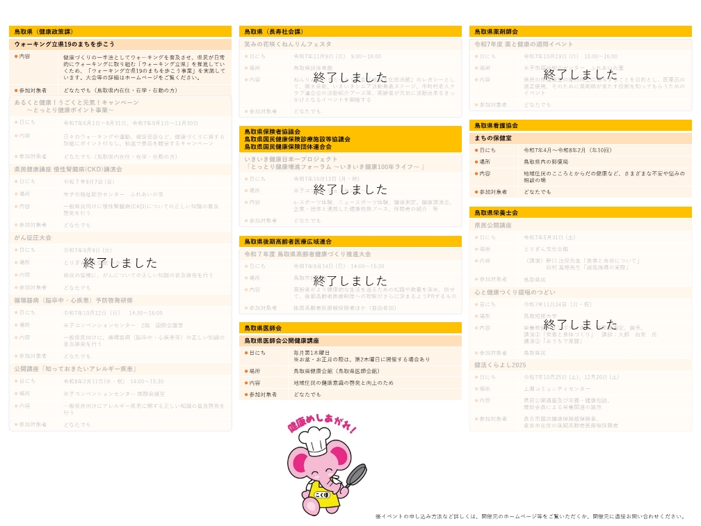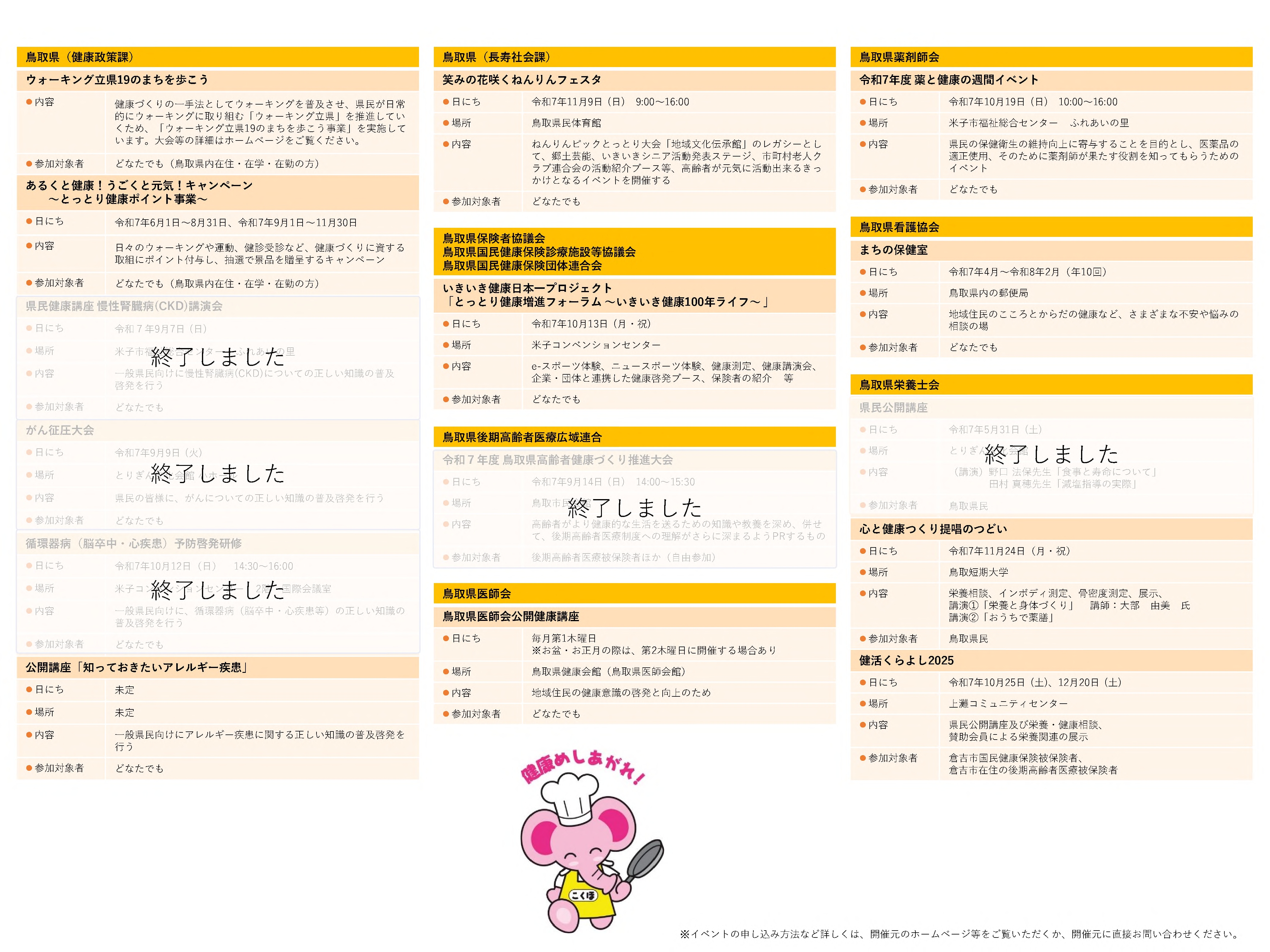 各イベントに関する詳細は開催者のホームページ等をご確認いただき、ぜひご参加ください。
