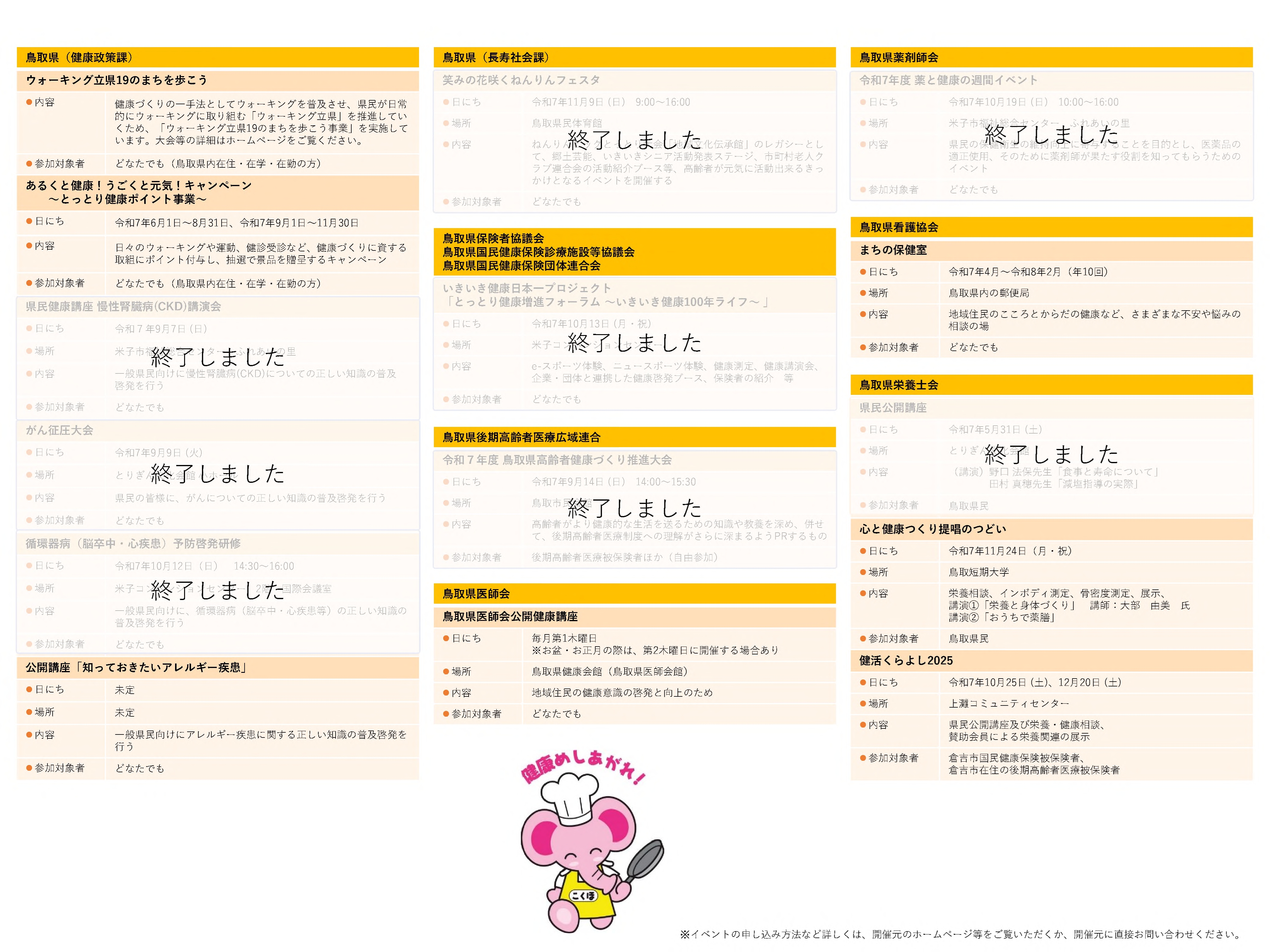 各イベントに関する詳細は開催者のホームページ等をご確認いただき、ぜひご参加ください。